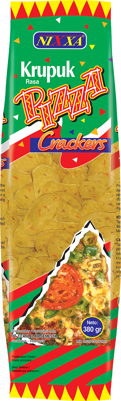 Krupuk Nixxa disajikan khusus dalam memberikan kepuasan sesungguhnya untuk dinikmati sebagai pelengkap atau camilan. Berbagai variasi rasa dengan komposisi terbaik diracik dengan pas untuk membuat hidup lebih berwarna dan menambah semangat menjalani hari. Bahan alami pilihan berkualitas yang telah melewati proses pembuatan teruji menempatkan Nixxa sebagai krupuk berkualitas tinggi dan harus diakui di berbagai negara.